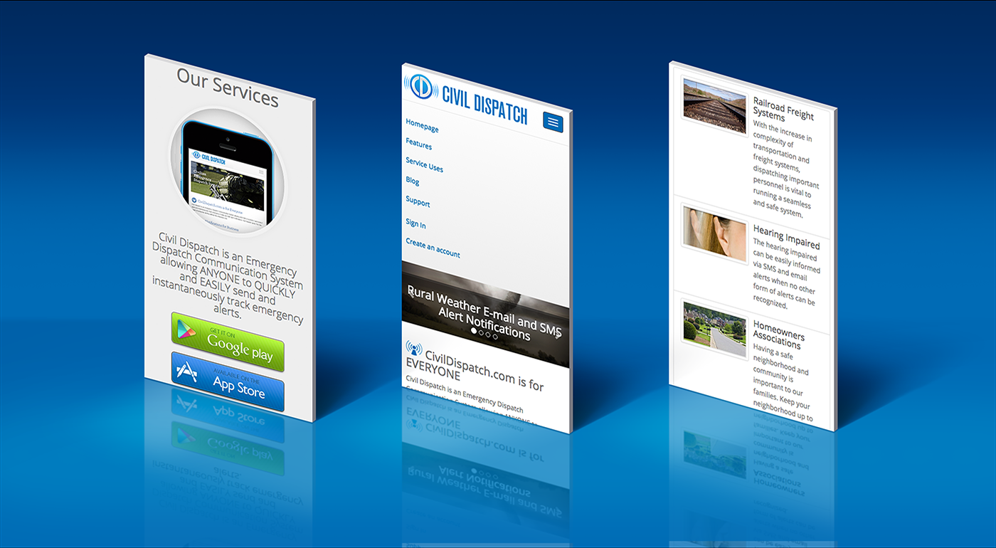 Recently Civil Dispatch came to us to request a mobile website. We came up with the perfect design concept to make their mobile website enhance their member’s viewing experience. Google's new algorithms that changes rank for sites that aren't optimized for mobile it was important for us to build a seamless mobile friendly version of CivilDispatch’s website. The mobile website is as easy on the eye and simple to navigate making finding the information you are looking for painless.