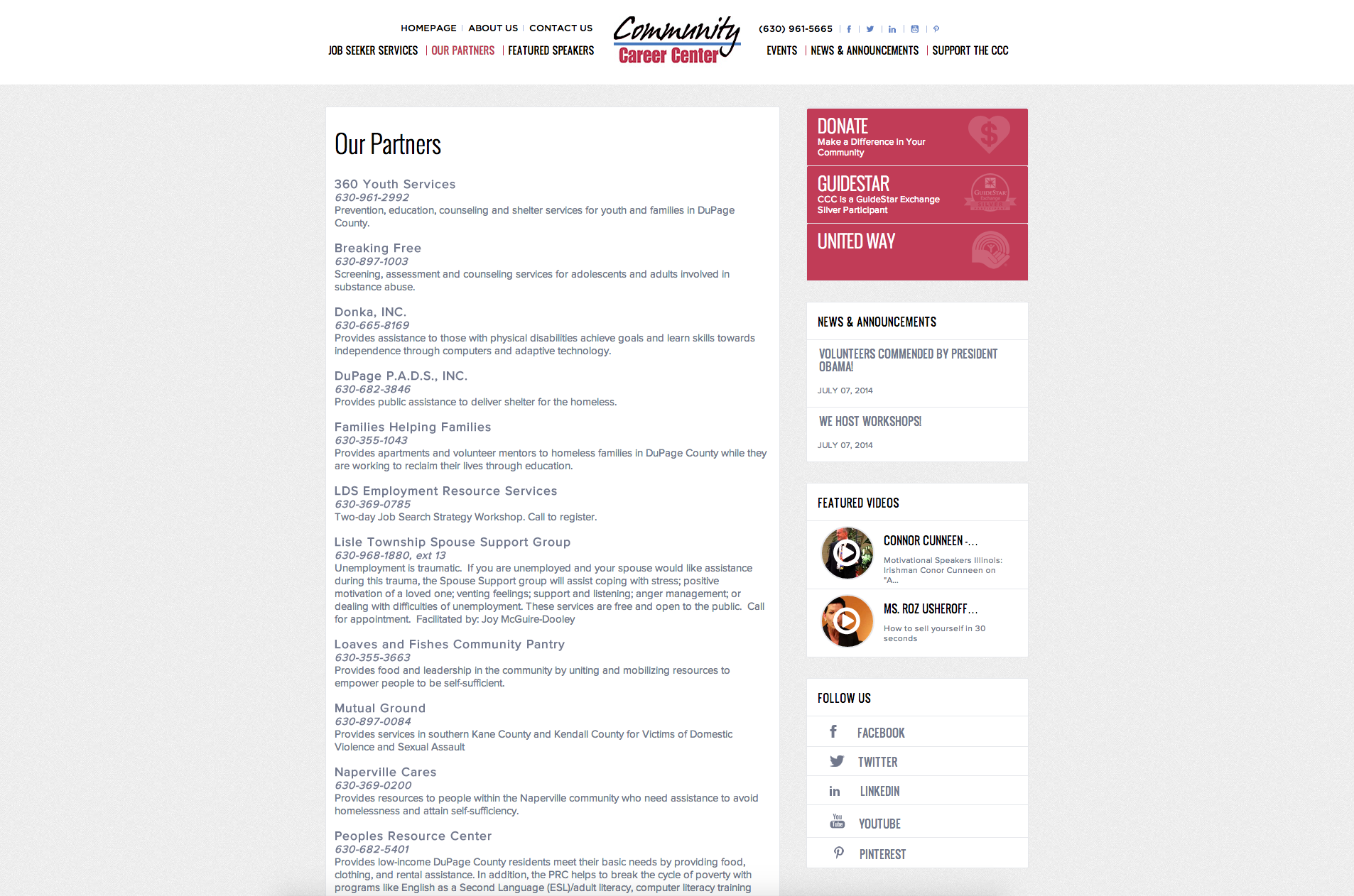 The Community Career Center came into being as the result of a multiphase grass roots effort to address the concerns of the underemployed and unemployed in Chicago. Unemployment adds daily pressures, stress, depression, and discouragement throwing a family into crisis. The Community Career Center partners with 23 local service agencies, together providing a safety net for job seekers and their families so naturally when it was time for a new online identity they knew right where to come.