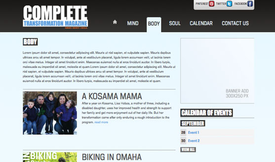 Complete Transformation Magazine has literally taken Omaha by storm and is becoming one of the most popular print magazines available in our market. So it makes sense for them to search out one of the best creative management firms in the country, nay - world, to build them their online publishing technologies. They knocked on the door, we answered and have delivered a state of the art publishing engine to allow their editors speedy access to publishing stories, events, and other information to continue their magazine to the web world.