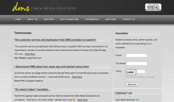 Data Media Solutions, certified WBENC "Women's Business Enterprise" company, offers the ability for their "tech savvy" clients to find the goods and services they need quickly and easily. For the more complicated or sophisticated solutions DMS offers a comprehensive design and support program.