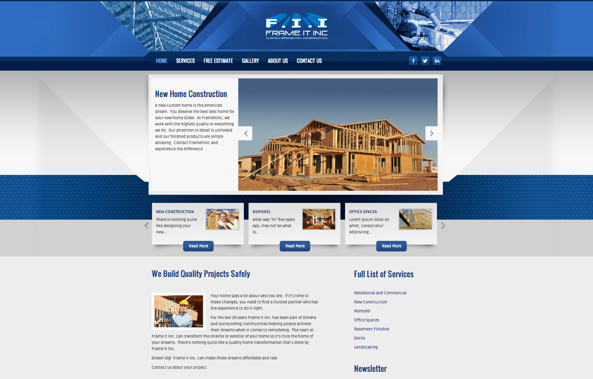 If its remodeling, new home construction, landscaping, basement finishing, or anything living/working space related Frame It Inc., is who you need to contact. Their mission is simple; "you will be a satisfied customer when the project is done". So it was very fitting when Frame It Inc., found themselves standing at our doorway seeking the same quality in a web vendor that they provide to their own clients.