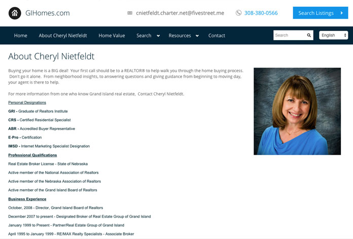 We listened to Cheryl’s needs and quickly started laying the groundwork for an easy to use but very flexible property management system. The end result? A very powerful cross-platform responsive real estate system that directly interacts with Grand Island’s MLS system her website viewers instant access to real-time property listings.