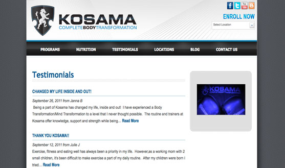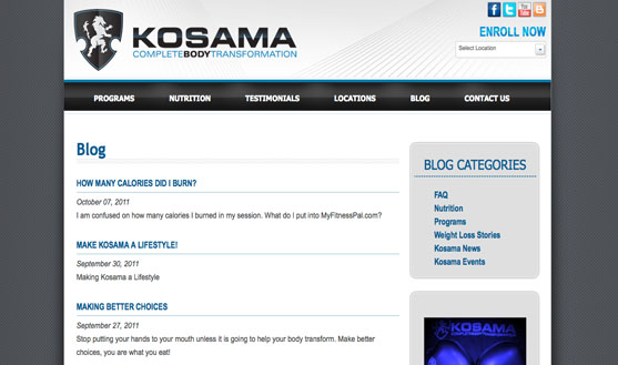 Kosama Omaha sought us out to help them resolve the missing look, feel, and features from their existing website. After gathering requirements and experiencing our own MMG / Kosama 8 week workout program our team of designers and engineers began working on a custom design to better match the overall Kosama Complete Body Transformation experience. The result? A great looking fully functional website with a load of features making it easy for the Kosama managers and coaches to update and communicate with their members offsite.