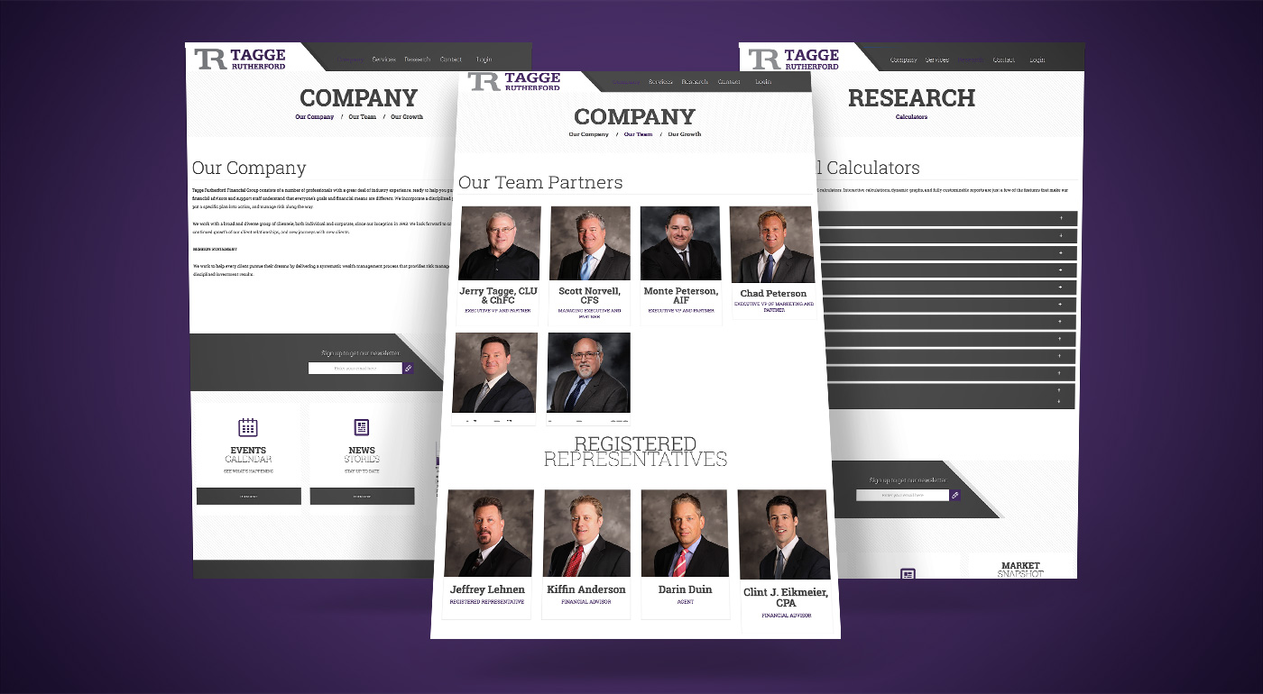 Tagge Rutherford Financial Group, headquartered in Omaha, Nebraska, is a full-service, comprehensive wealth management firm. They asked us to come up with a richer design that was indicative of who they were as a business.